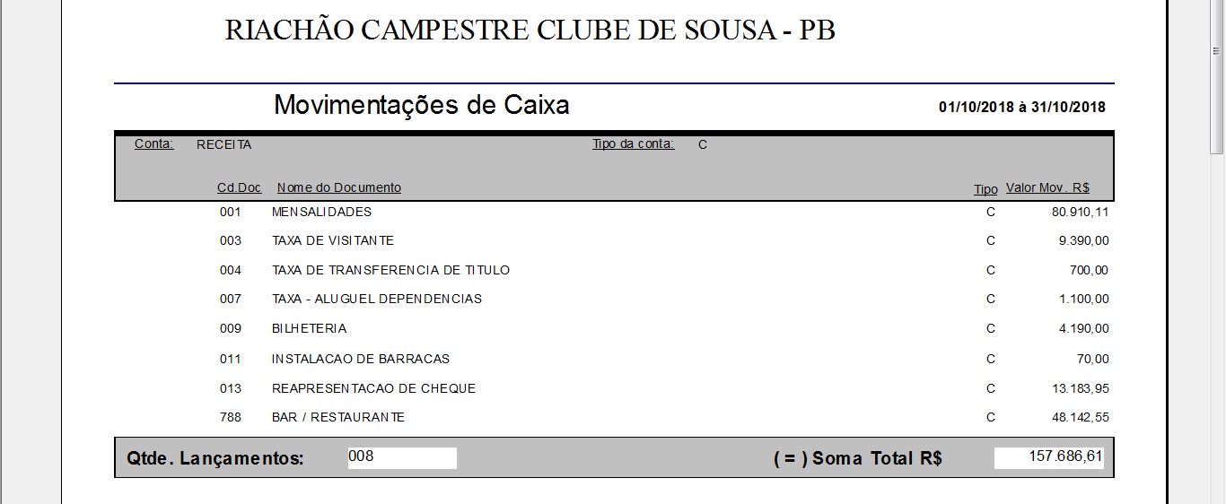 MOVIMENTO DO CAIXA OUTUBRO 2018